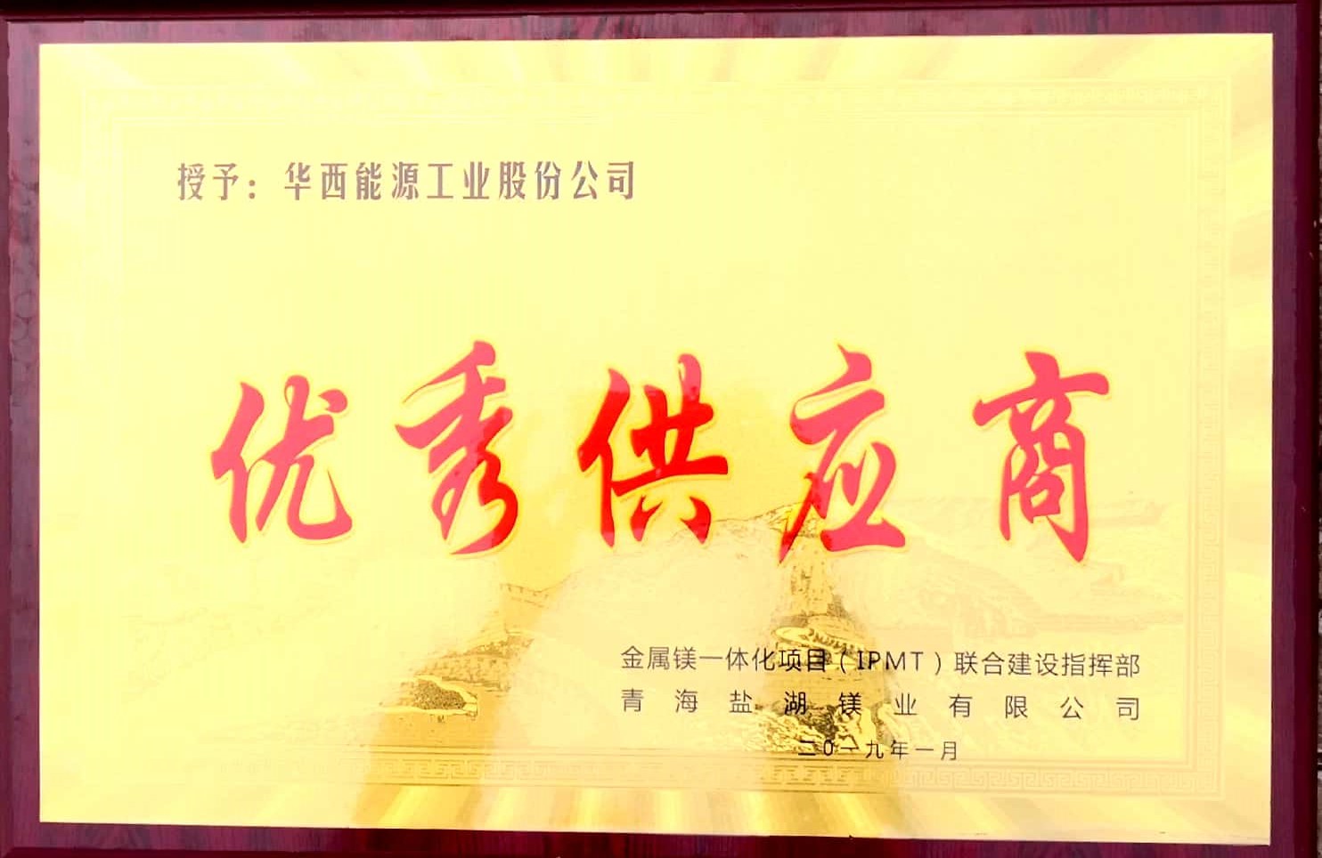 公司荣获“优秀供应商”荣誉称号